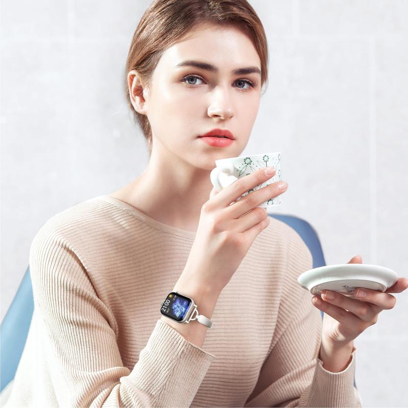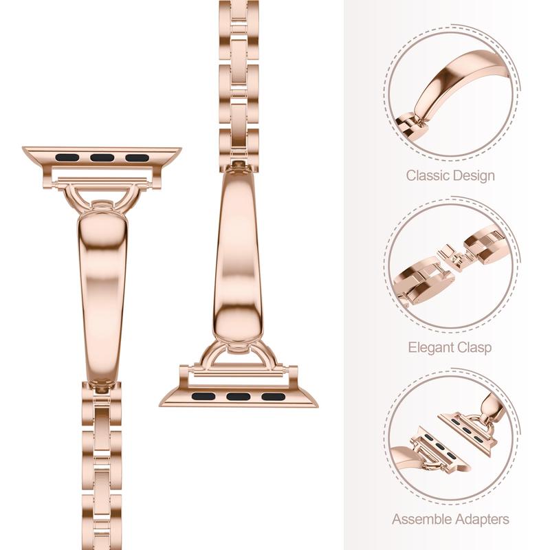 Compatible with Apple Watch sizes 38mm, 40mm, 41mm, 42mm, 44mm, 45mm, and 49mm. Works with Series 1–10, SE, and Ultra models. The slim fit is ideal for smaller wrists and offers a secure, flattering look.