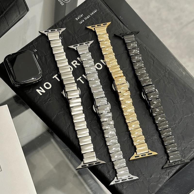 Crafted from high-quality stainless steel, this Apple Watch band offers a sleek, durable design that elevates the look of your watch. Its smooth finish and refined style make it ideal for both business and everyday wear.